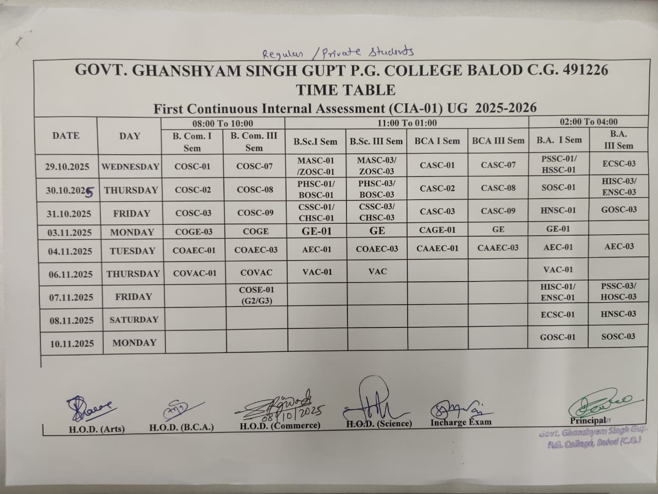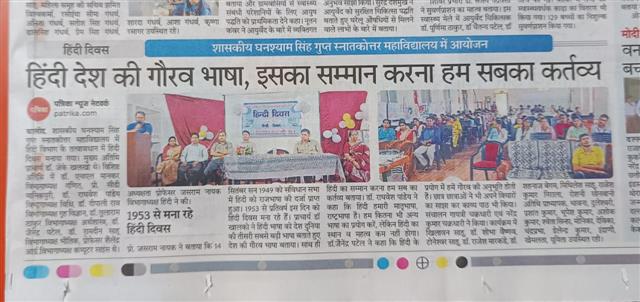 Govt. Ghanshyam Singh Gupt P.G. College Balod cordially welcome you to its website. With the motto, Tam -So-Ma-Jyotirgamaya,  the college has successfully completed 30 glorious years of spreading  light of knowledge to create a whole new category of intellectually competent,  morally upright and socially healthy citizens. Our’s is an aspiring institution dedicated to  achieve excellence in the arena of higher education where the future is full of opportunities and promises.