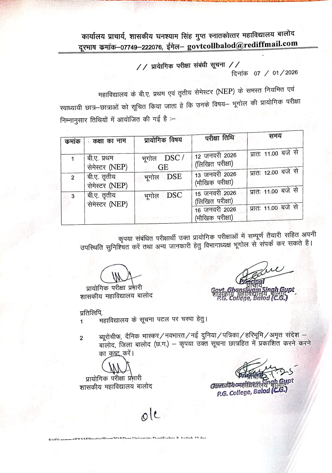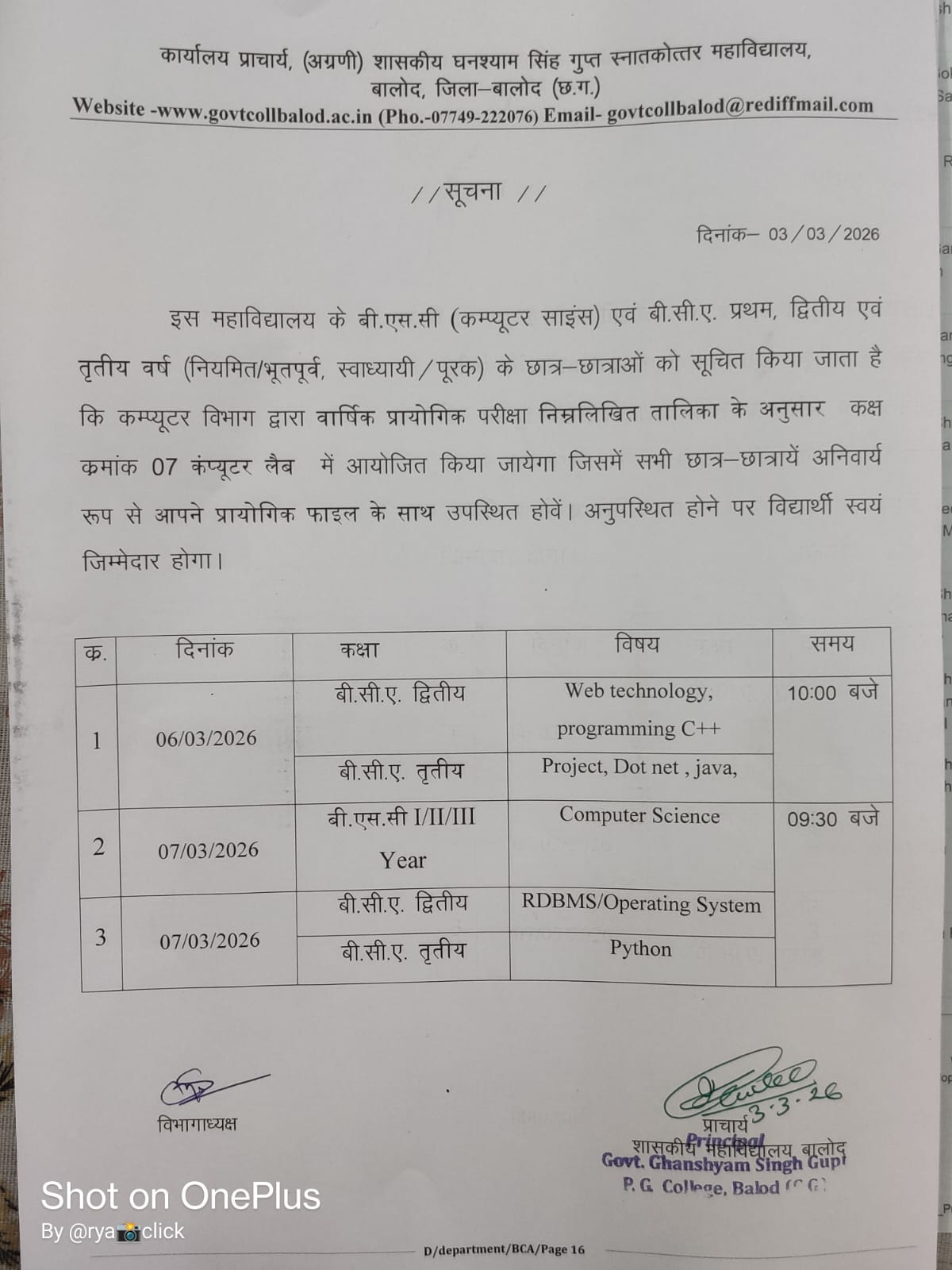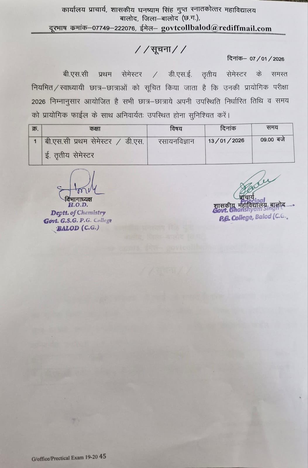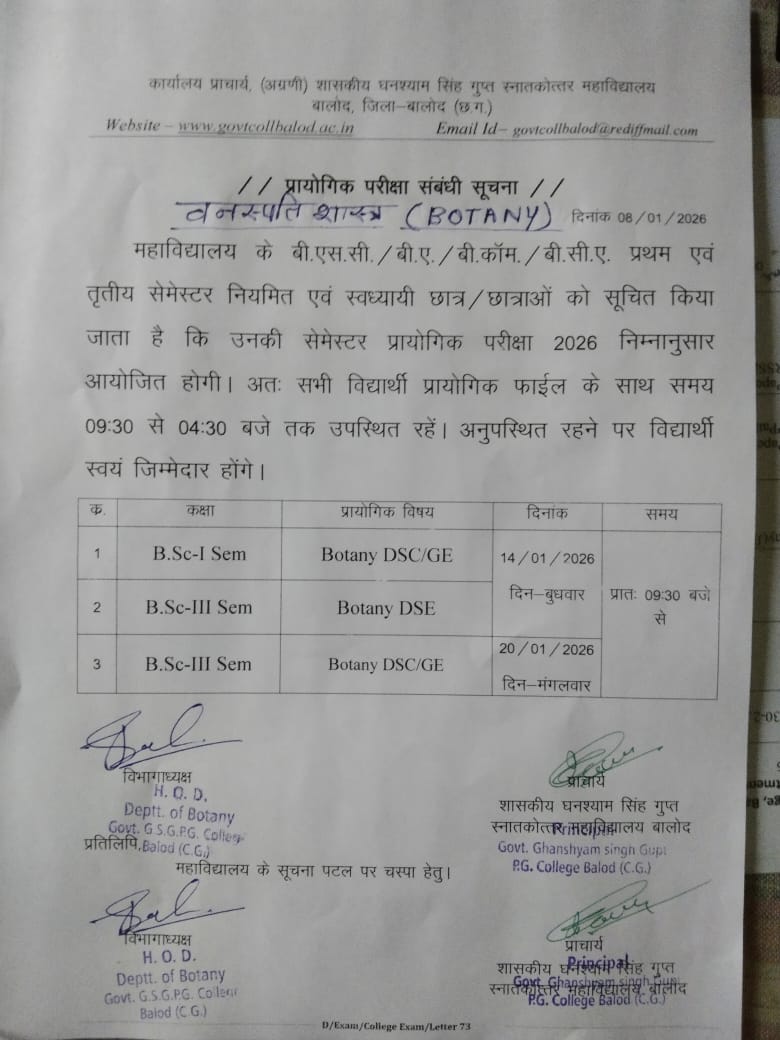 Govt. Ghanshyam Singh Gupt P.G. College Balod cordially welcome you to its website. With the motto, Tam -So-Ma-Jyotirgamaya, the college has successfully completed 30 glorious years of spreading light of knowledge to create a whole new category of intellectually competent, morally upright and socially healthy citizens. Our’s is an aspiring institution dedicated to achieve excellence in the arena of higher education where the future is full of opportunities and promises.